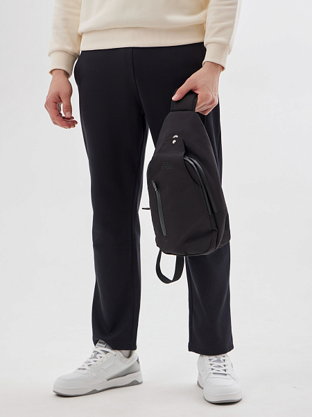 Стильный всесезонный аксессуар, который дополнит образ любого мужчины - черная мужская сумка слинг через плечо из полиэстера.